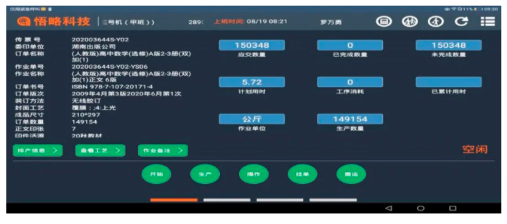 ERP系統(tǒng)內(nèi)產(chǎn)品有教材、教輔、圖書、期刊、報紙、超市產(chǎn)品。2019年訂單數(shù)為7400余份,品種7000余種,總共完成3.42億冊(份)的生產(chǎn)。
