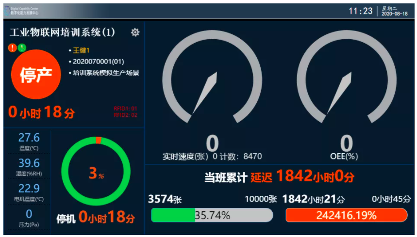 (5)車間當(dāng)班的生產(chǎn)狀態(tài)和實時任務(wù)、顯示任務(wù)進(jìn)度、設(shè)備綜合效率(OEE)等重要信息。